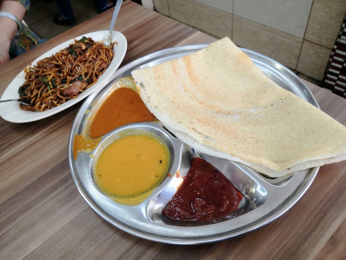 这个车停的站比较少,但是刚好在下一个行程附近...到茨厂街附近之后实在是有点饿,我妈非要尝试一下印度菜,点了一份炒面和roti,吃得我生无可恋,主要是感觉太不卫生了,炒面一坨一坨的,我已无力吐槽...