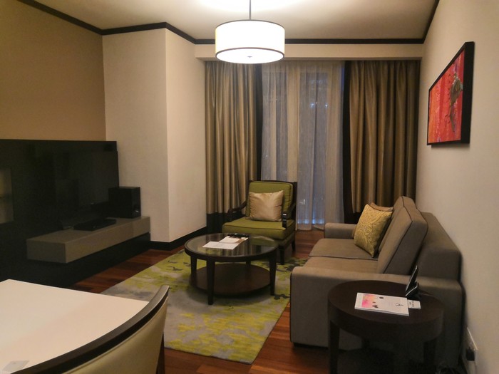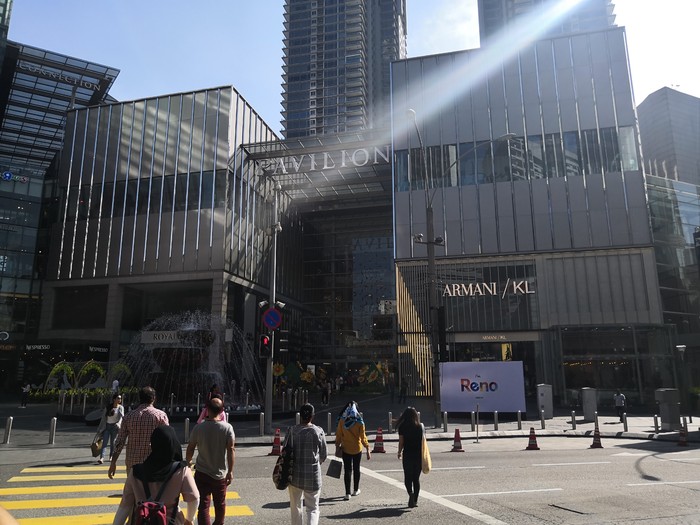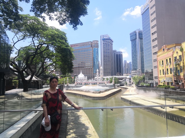 转乘到KLCC,我们刚好就住在KLCC双子塔附近,早上阳光非常的热烈,热.......