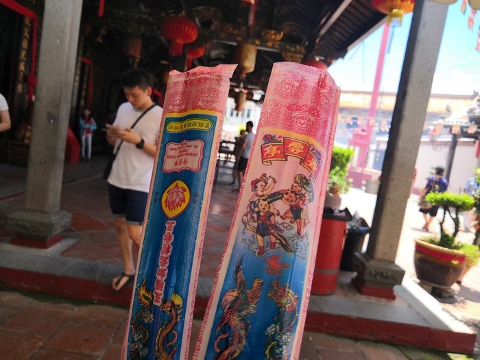 买好回程票之后,依旧grab去市区按照地图打卡各种景点,走行程,马六甲基本上没有公共交通,全靠grab~第一站青云亭,1马币1包香,我和我妈1人请了1包,与我们这不一样的是,是一个香炉一注香~