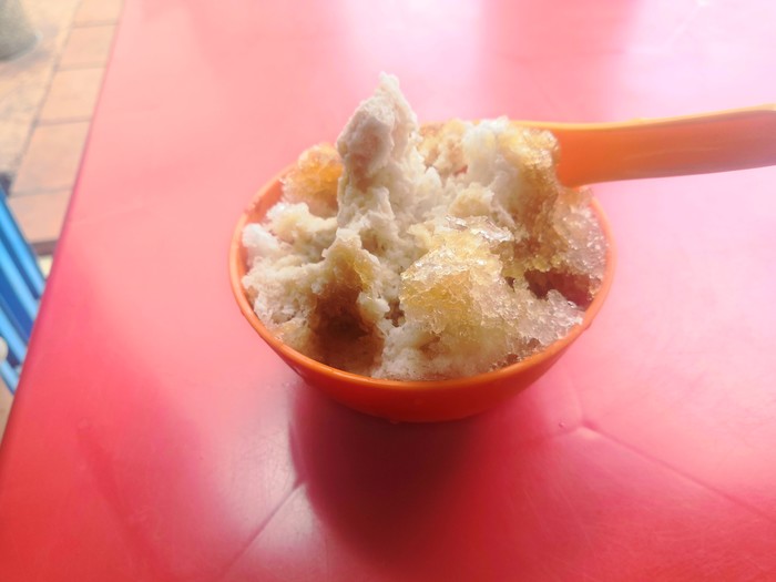 吃完饭之后小逛了一下就回酒店休息了,到了6点多的时候有点饿,特意来打卡传说中好吃的煎蕊,这个真心还不错,因为当时下暴雨店家正在收摊,赶着帮我做的一份...好喝...因为雨太大的原因所以一直在等雨小点,去旁边买了炒果条,晚餐结束...