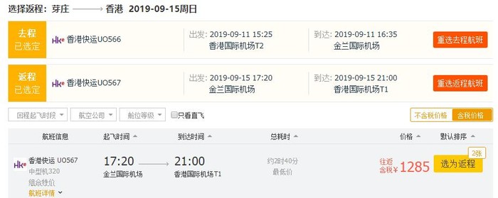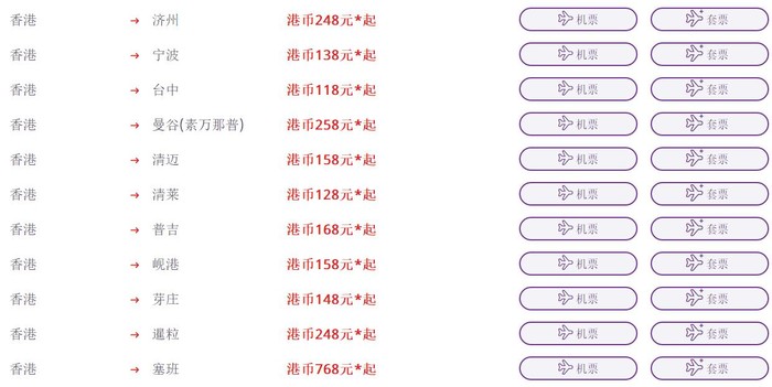 香港快运周促,买来回机票104人民币起~