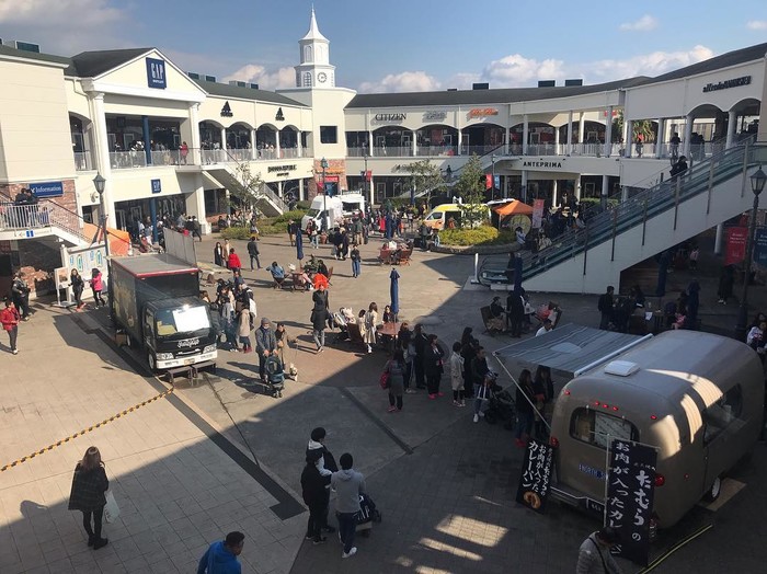虽然看不到富士山但可以看到三毳山,周围的绿色植被比较丰富,建筑以美国东海岸的城镇风格为主,景色还是很不错的,虽然可能购物狂们并没有在意。国际知名品牌基本上在这里都有店铺,再加上日本国内的品牌店共约180家,也算得上比较大型的购物城了。
