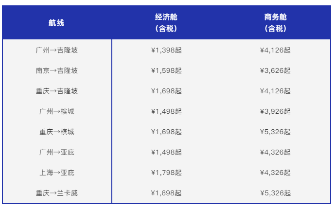 促销航线如下: