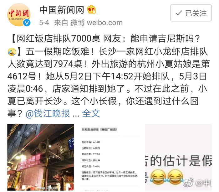 最网红的莫过于文和友龙虾馆,五一排队7000+桌更是直冲热搜!