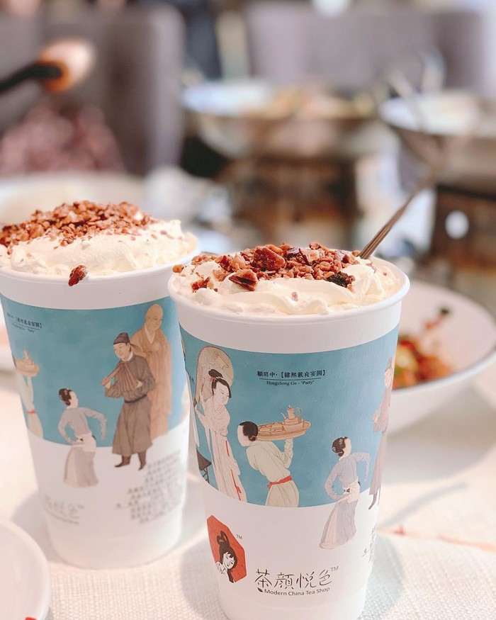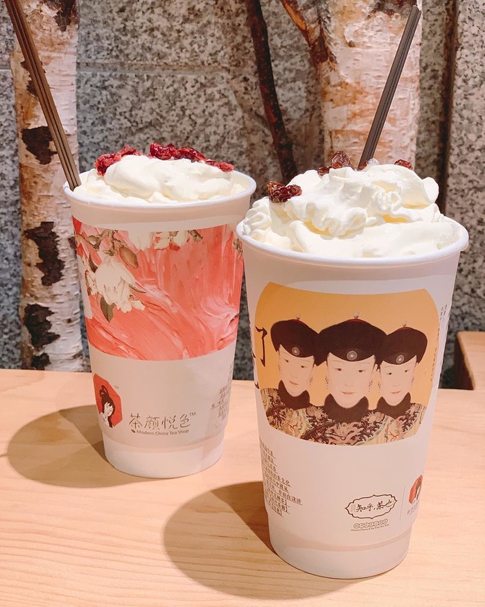 像“幽兰拿铁”、“芊芊马卡龙”、“人间烟火”等都是必点饮品。一杯不贵,普遍都十多块,而且每种茶类会有自己独有的中国风包装。