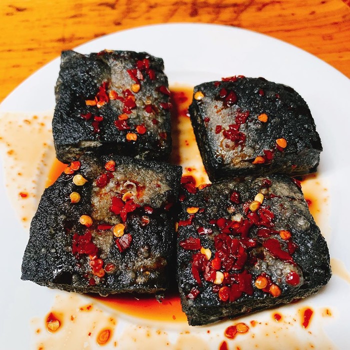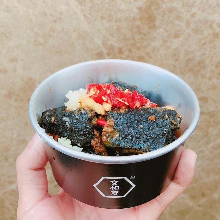 位置不是很好找,典型的“路边摊”,慕名而来打卡的食客很多,支几张桌子供大家品尝臭豆腐。入口酥脆,很入味。