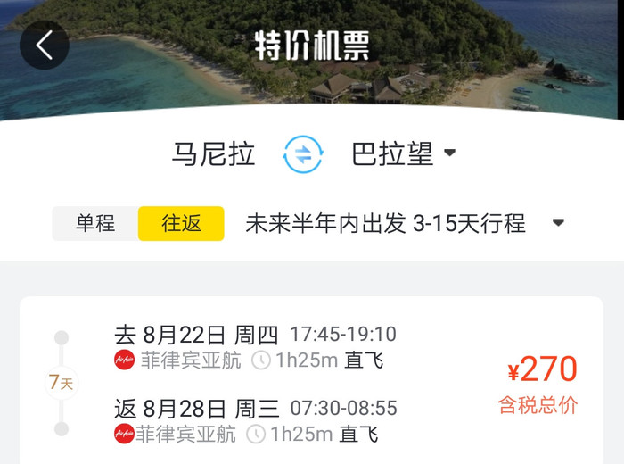 而菲律宾境内机票都超便宜,马尼拉往返巴拉望机场直飞价格在270-550元;