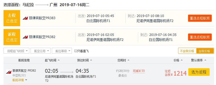 广州=马尼拉,券后1159元;