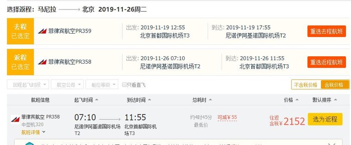 北京=马尼拉,券后2097元;