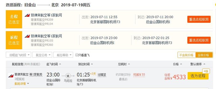 北京=旧金山,券后4478元;
