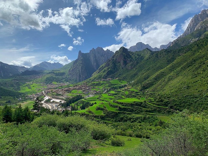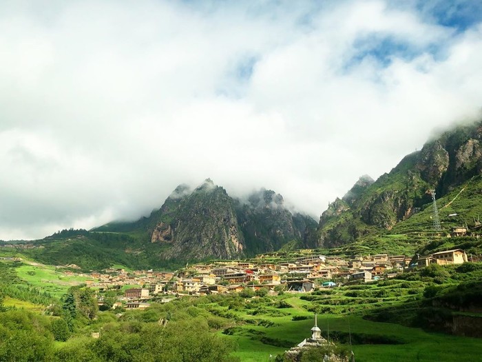 这片世外桃源虽然早在近百年前就被洛克誉为亚当和夏娃的诞生地,但至今仍是一块处女地。纯净的天空,连绵巍峨的山峦,一座座藏寨依山而建,极富藏族风情。