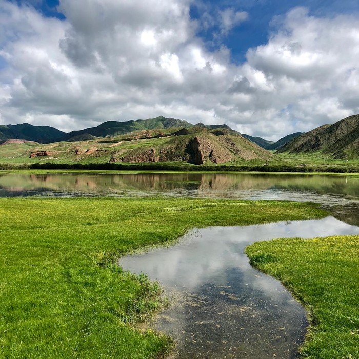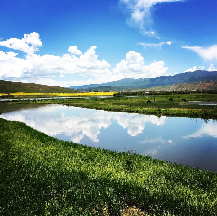 位于甘南夏河县西侧,四周群山环抱,中间是开阔平坦的高山草原,草原面积达70平方公里。每到夏天,蓝天白云,绿草如茵,野花遍地,牛羊成群。