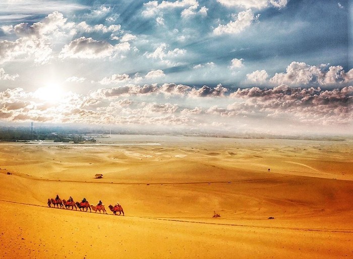 在沙漠中漫无目的地走着,耳畔是骆驼脖颈上渐行渐远的铃铛声。视线望向沙漠深处,是“大漠孤烟直,长河落日圆”的孤寂与壮美。