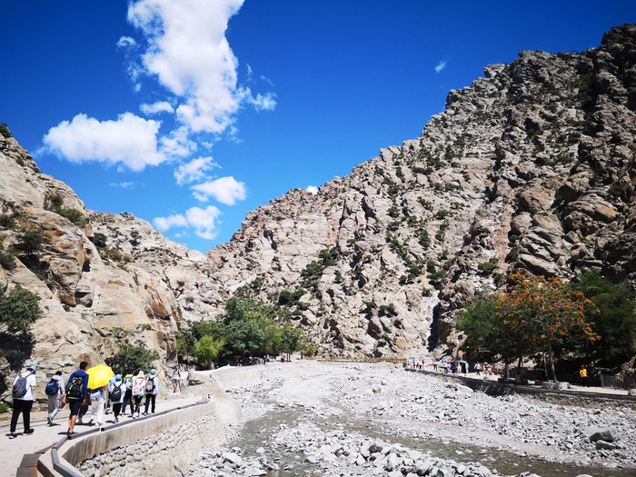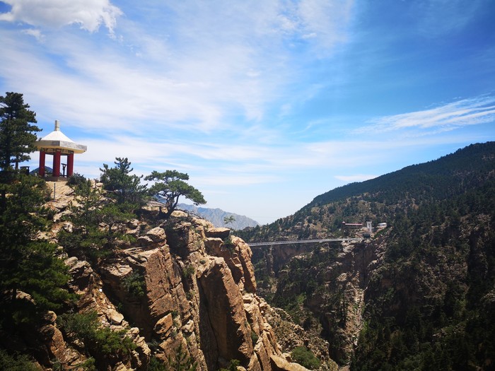 早上去了贺兰山国家森林公园,12点上山,17:20才下山,累趴了,不过贺兰山真的很雄壮,和南方的山完全不一样,南方的山上树木成林,像穿着衣服的姑娘,贺兰山上都是岩石,树林成了点缀,看到贺兰山才理解国画里那些群山图为什么这么画,古人诚不欺也。在清风岭上每天还有高空铁索表演,看着挺惊险的。