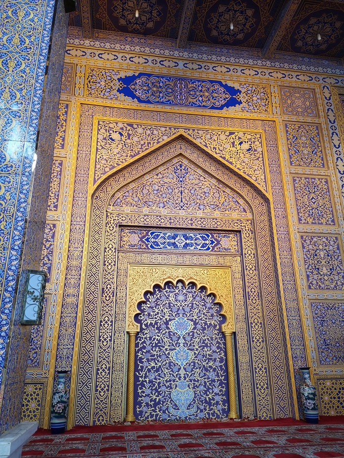 下一站中华回乡文化园,大门看起来超像泰姬陵,进去园子挺大的,建筑也看得出颇下了一番功夫,就是徒有其表,有个博物馆,就几张图片介绍一下著名的回民,完全没下功夫,唯一让我惊艳的是一个礼拜堂,里面也太金碧辉煌了吧。
