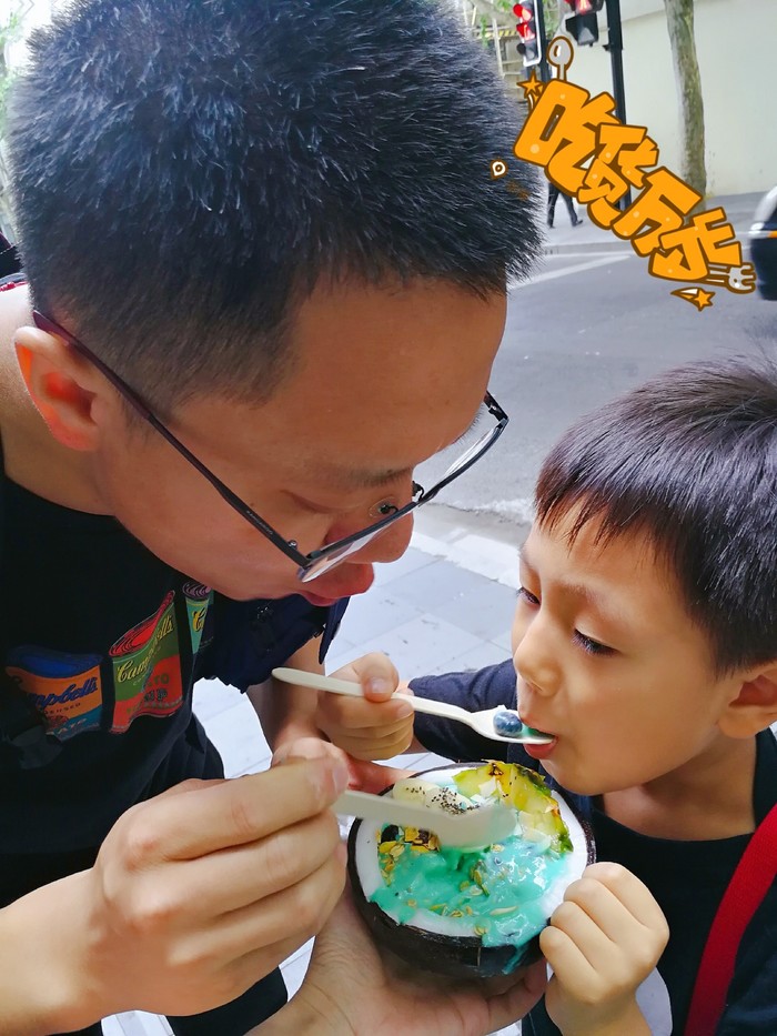 时间不早了,我们找了离孙公馆最近的一站下了巴士,准备逛吃回去。儿子耍赖不走,还得老爸出马。