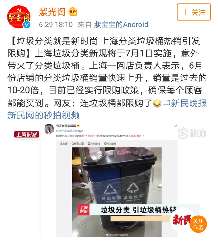 最近与“上海垃圾分类”的相关话题频频上热搜。