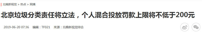 比如北京市将通过立法约束垃圾分类, 罚款上限将不低于上海...