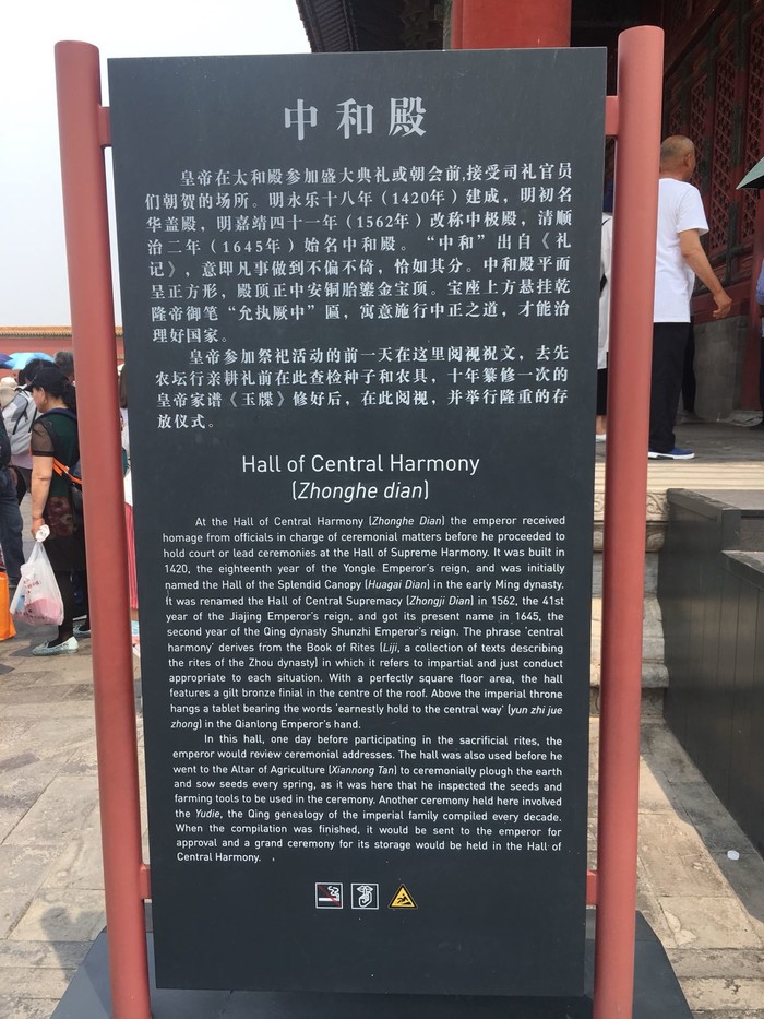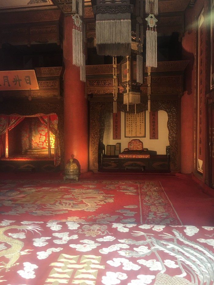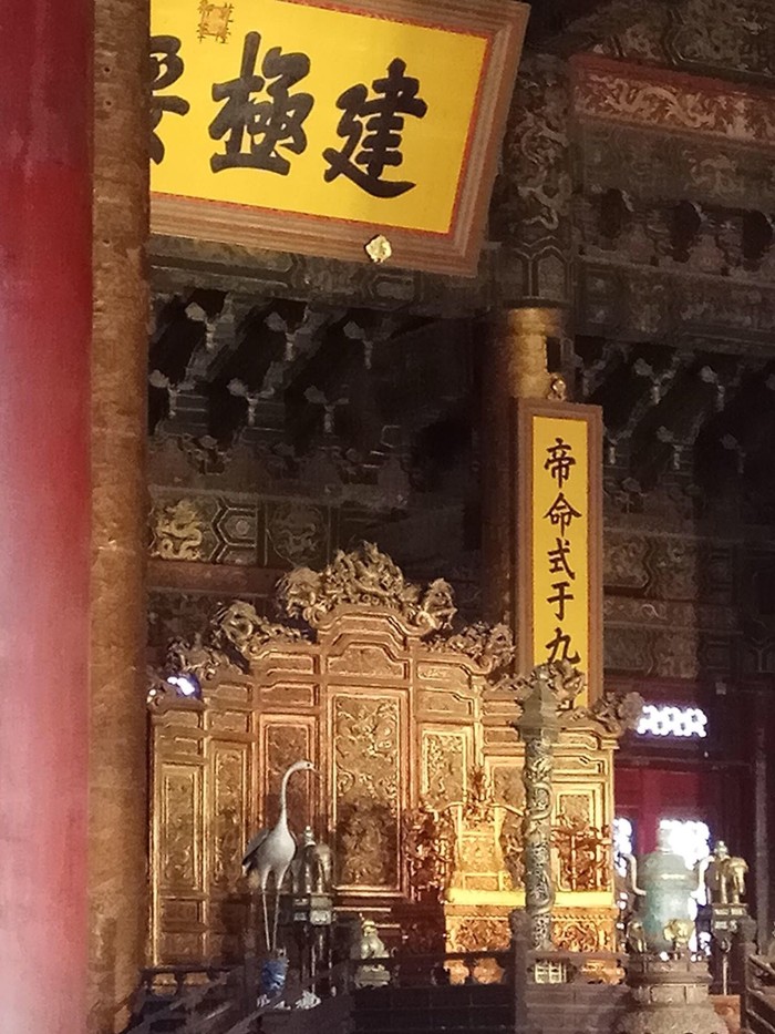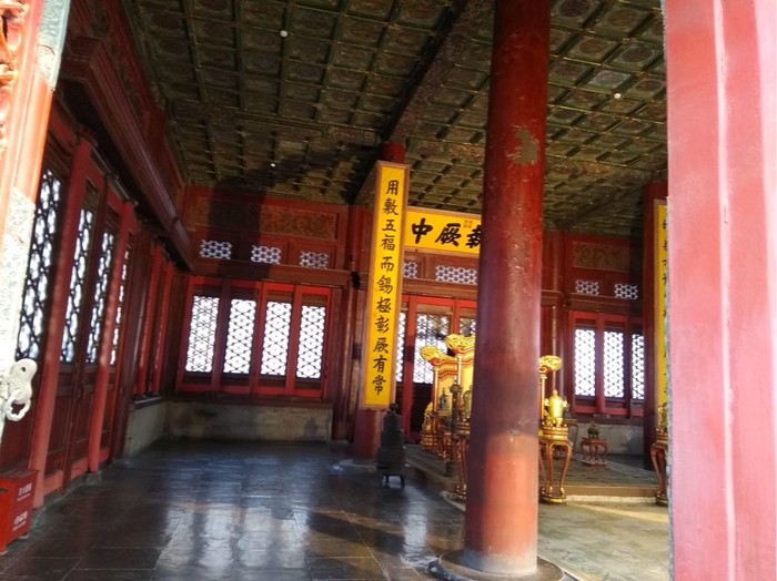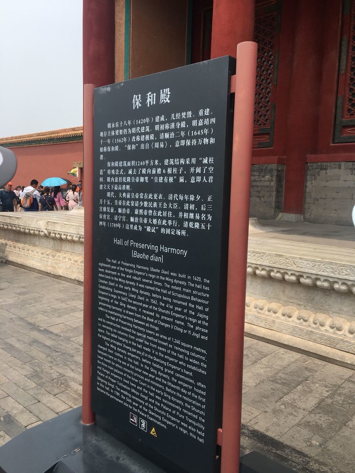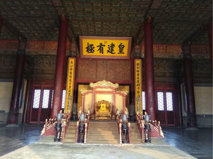 入了太和门,就来到了故宫的外三殿。外三殿的第一殿是"太和殿",也就是大家熟悉的金銮殿,是明、清两代举行重大庆典活动的场所。给人的感觉是皇家的森严和君临天下的气势,不过感觉皇帝的龙椅并非想象中的高高在上,影视剧中的龙椅要远比现实中的更高。过了太和殿的中和殿说是皇帝参加大典礼或朝会前,接受司礼官员们朝贺的场所,显得要小一些。外三殿的最后一殿保和殿据说采取了"减柱造"的特殊法式,减去了殿内前檐的6根柱子,开阔了空间。