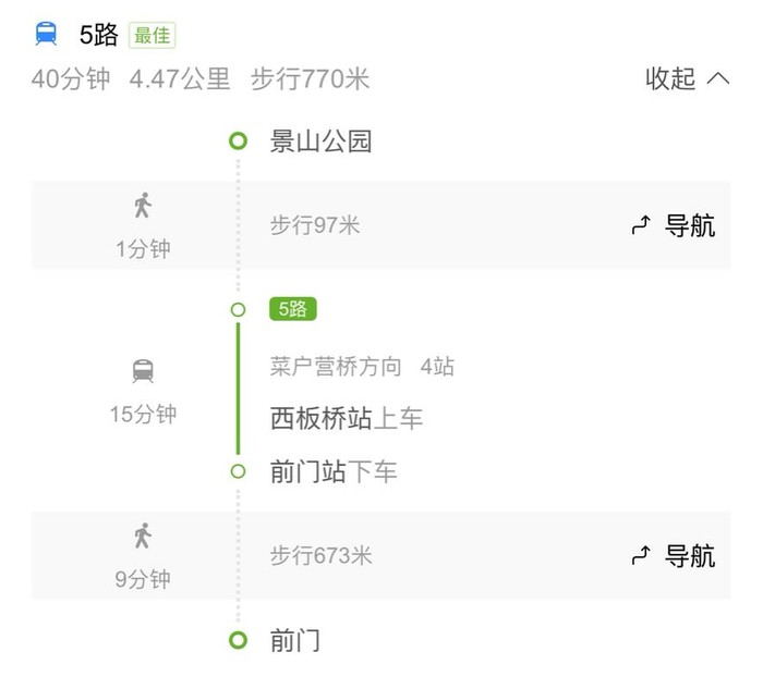 回程手机导航坐120路公交车,前门站下步行回酒店。