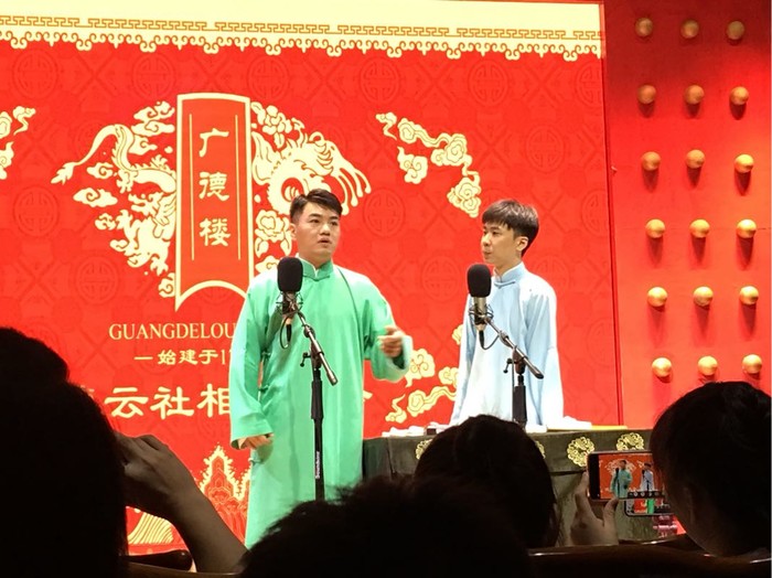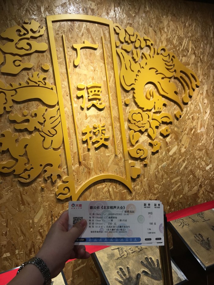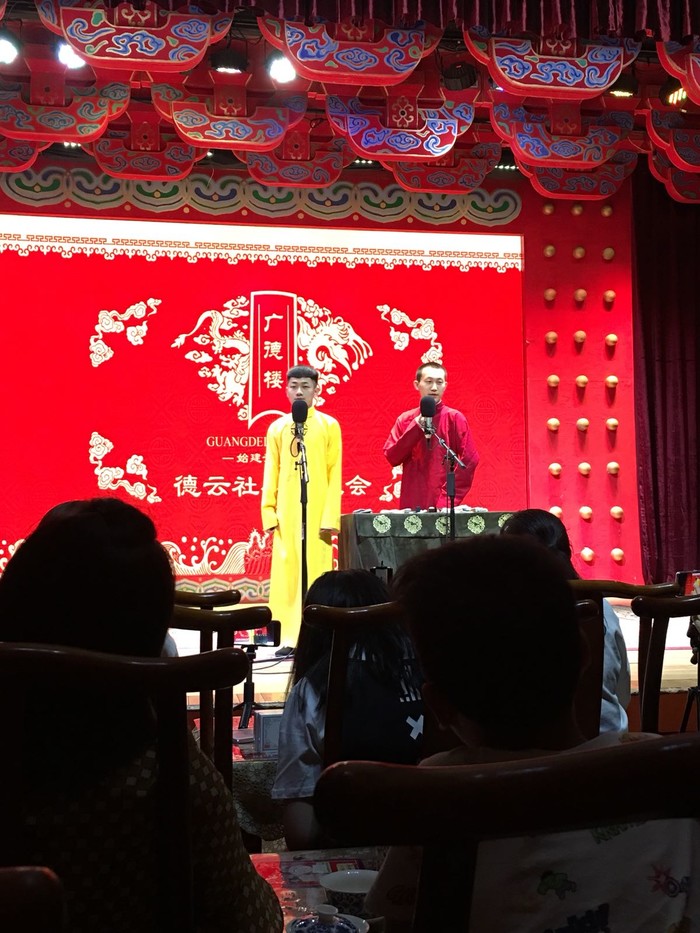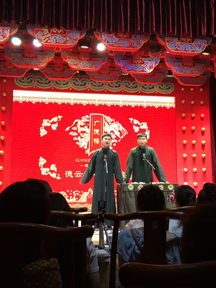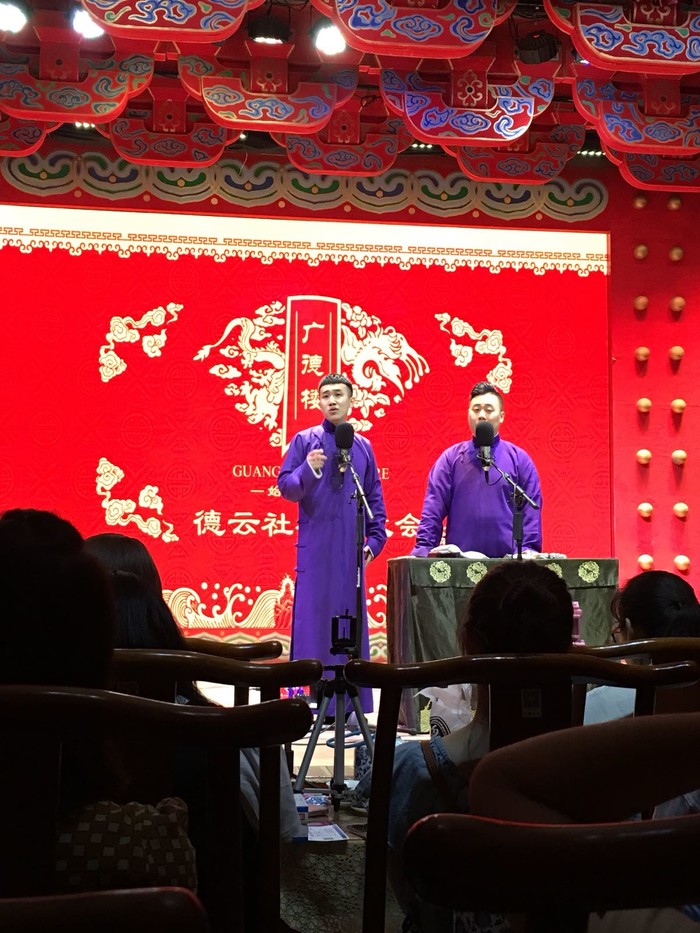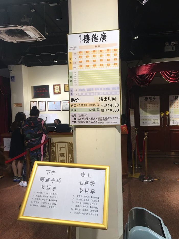 前几天就预约了德云社听相声,把东西放回酒店,吃了点小吃,就直奔广德楼啦!18:30开门入场,不可以自己带水和食物,检票后会有工作人员带到座位上,19:00准时开场,21:30结束。