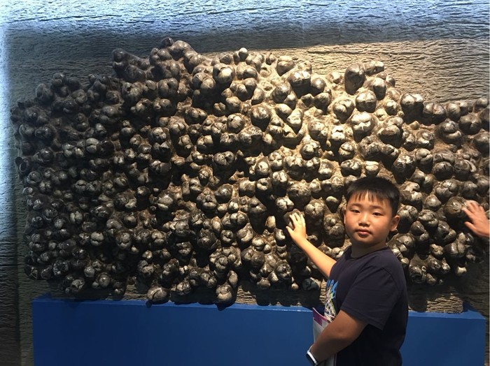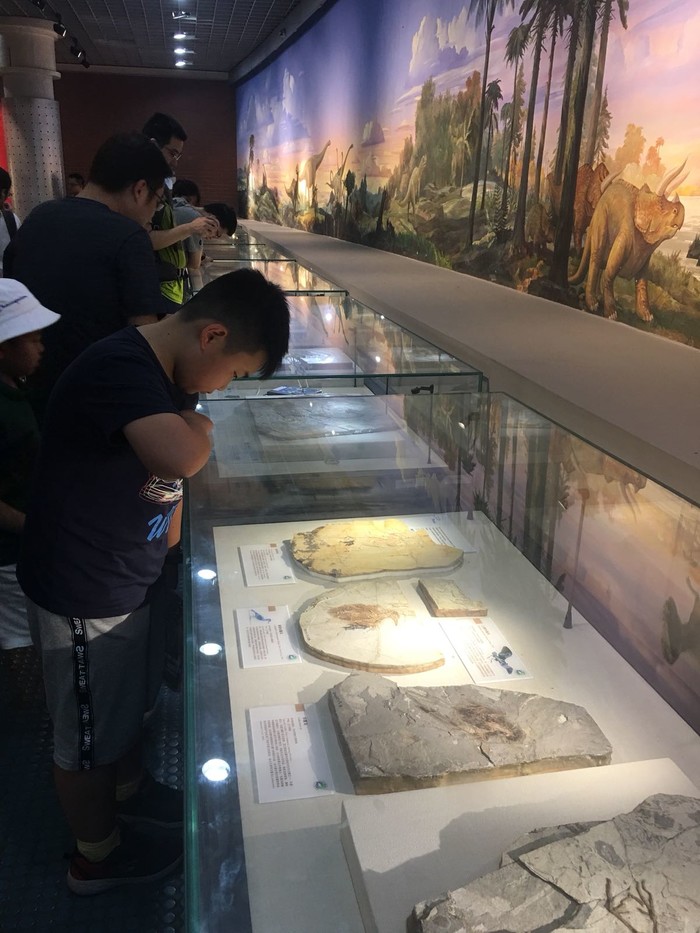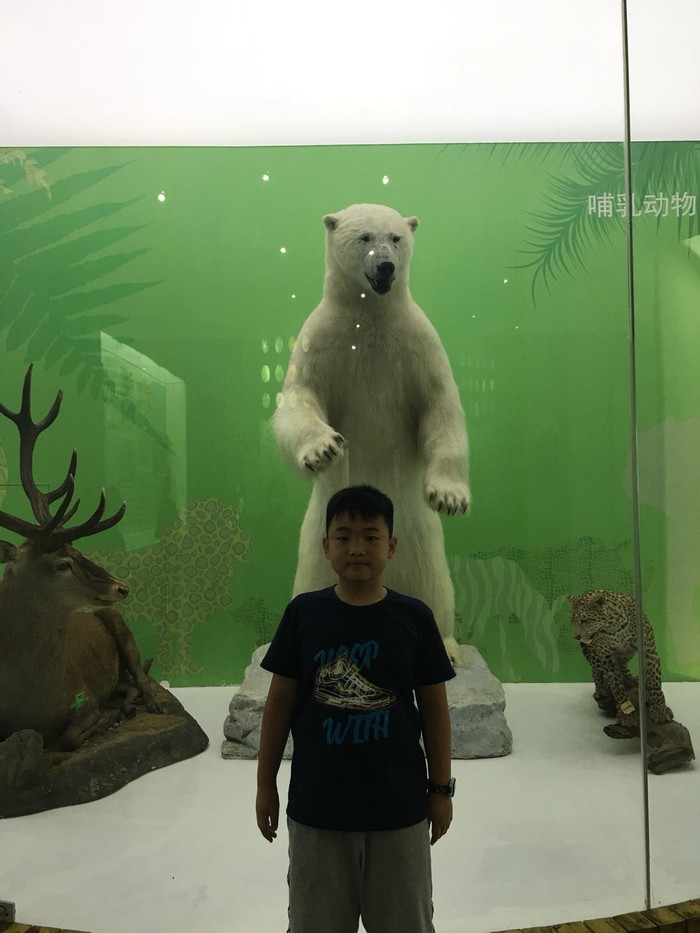 吃饱喝足,从天坛南门乘坐36路,特11路前往天坛西门,下车往回走50米就是北京自然博物馆大门。不需要买门票,但需要关注公众号网上预约场次, 有身份证直接刷,孩子需要拿户口本到售票处窗口换取纸质门票方可进入。