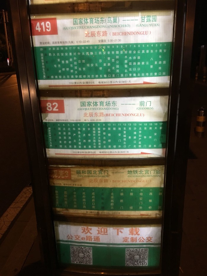 只看了鸟巢,水立方,实在走不动了,导航回酒店。穿过鸟巢售票大厅,找到82路公交车,到前门下。