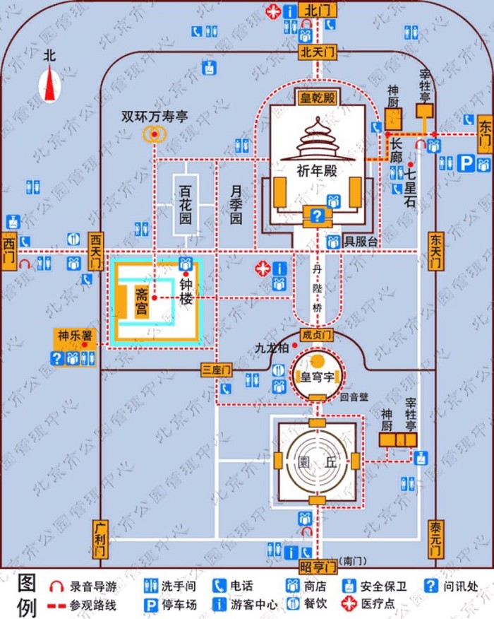 天坛,最早可以追溯到明永乐年间,当初在建造的时候其名称也不叫天坛,叫天地坛,其作用就是用来祭天祈谷。如果你对历史足够的了解,你会发现天坛的建造还有一层政治含义:燕王朱棣为迁都北京做准备,其后经历了明清两代,在清朝又经历了多次修建。如果你对天坛足够了解,仔细观察天坛的游览图你会发现,天坛的主体建筑是祈年殿,斋宫,圜丘。我们现在看到的天坛为清代修建后的,但是在一些建筑上还是能看到一些明朝建筑布局的布局:可以通过神乐署凝禧殿遥想当年的大四殿。天坛集中国古代建筑学、声学、历史、天文、音乐、舞蹈等成就于一体,也正是如此 ,才吸引着各国领导人缤纷驻足。
