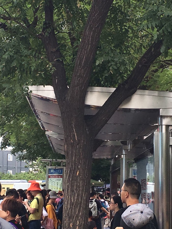 天气热,一路走下来还是挺累的。回酒店稍事休整,晚上出发前往三里屯。出来后手机导航找到最近公交5路,一车直接到前门站。这么多天了,头一次坐车人挤人。还好路程不远,只能忍忍了。