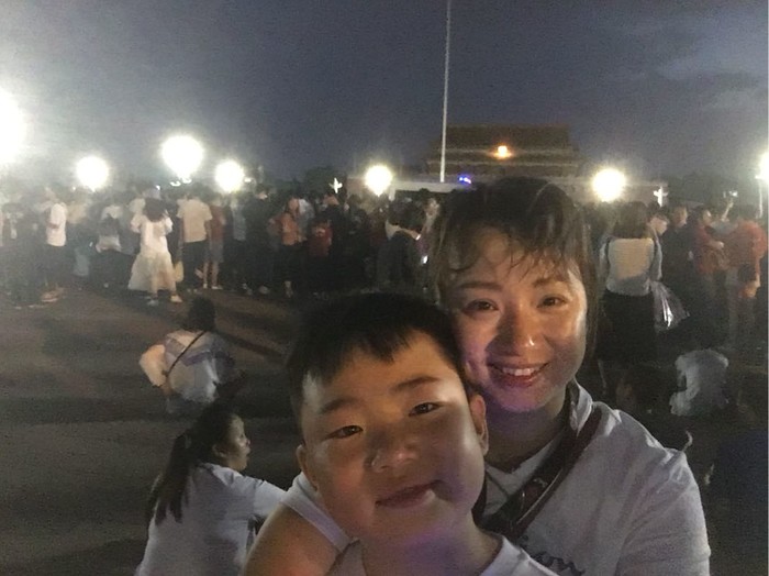 我们总以为早点起,就能排在前面,其实根本不是那么回事。我们那天4:48分升旗,我们带孩子3:00就从酒店出发,连奔带跑过了安检,3:30已经站在升旗仪式对面广场,但是不给进入主广场。只一会功夫,团队都乌泱泱的如潮水般涌来……4:00准时开围栏门,人们都从四面八方涌向广场,考虑到体力和安全,我们决定慢步过去,就算跑我们也不行。带孩子来感受一下就好,只能这么安慰着自己和孩子。