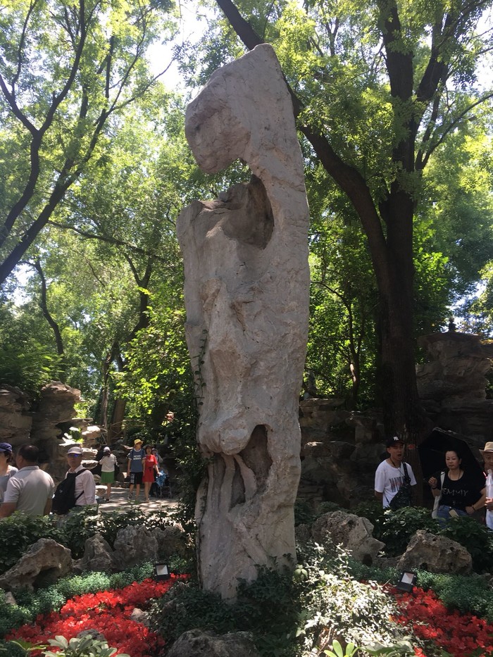 此石正面像一条鱼,背面像一个妇人怀抱婴儿。据说和珅得到此太湖石,就有了封神阴德。