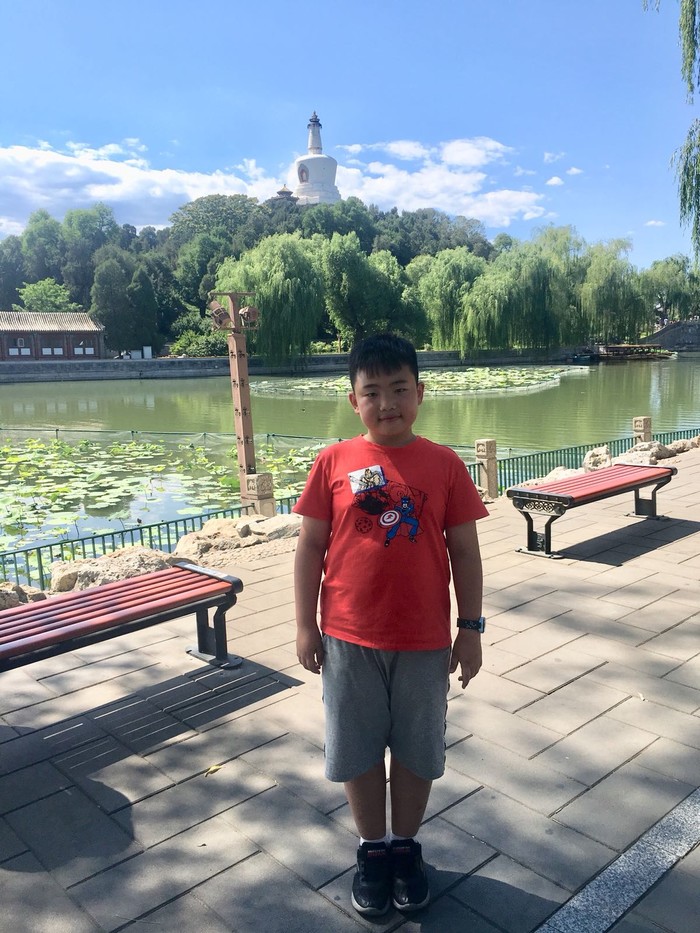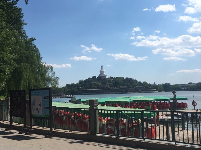 北门进来后,慢慢闲逛。就想带孩子来看看<<让我们荡起双桨>>歌词中那美丽的白塔!