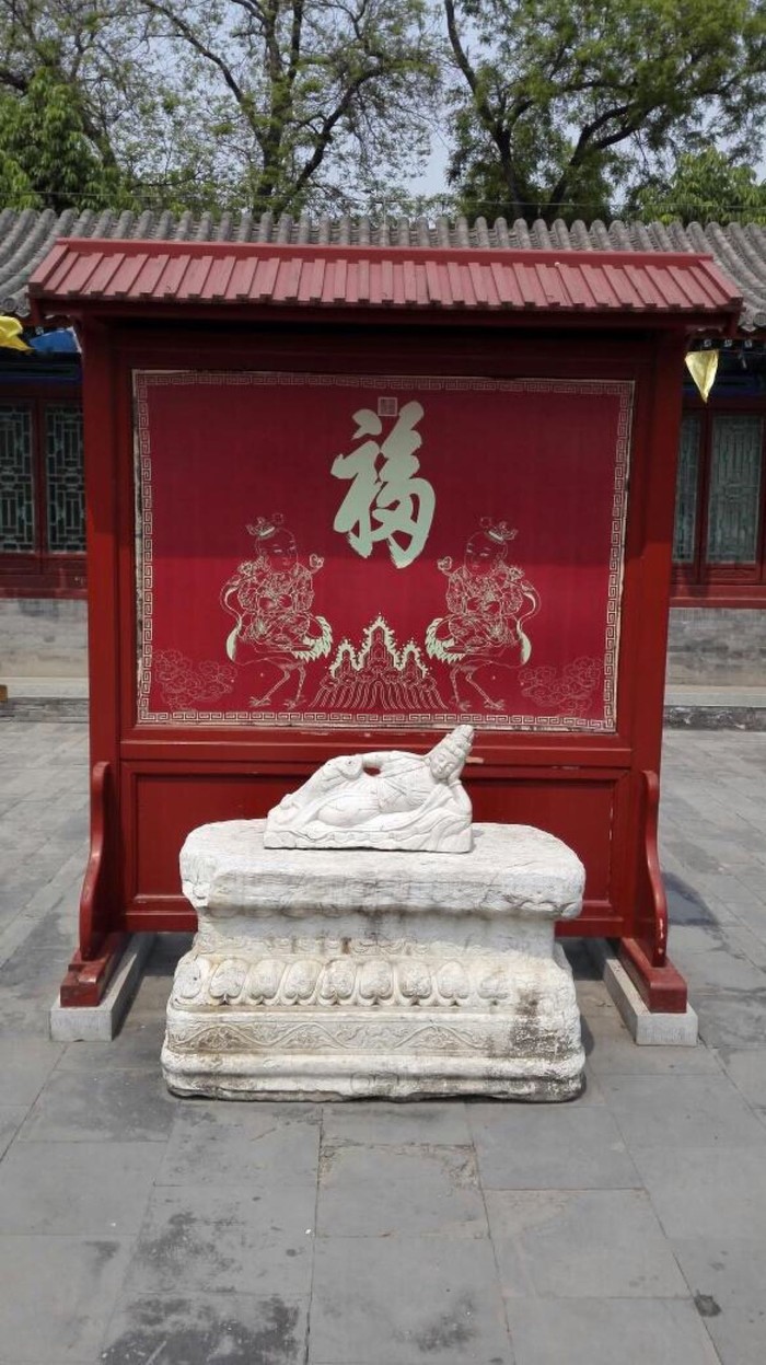 第一,这是康熙御笔,而且是加盖了"康熙御笔之宝"印玺。第二,这是康熙写给祖母孝庄太后的,当时正值太皇太后寿辰将至却又生了病,为了写此字给祖母祈福,康熙斋戒三日并沐浴后郑重写成,非常严肃滴,而恰巧字成之后孝庄的病很快就好转了。第三,这个福字的右上角的笔画,看上去像个"多"字,而其他的笔画细看又看出"子"、"才"、"田"、"寿"和"福"字,和这个"多"字组合起来就是多子、多才、多田、多寿和多福,这寓意是极好。下面的田是故意不封口的,取的是鸿福无边的口彩,而整个"福"字写得又长又瘦,寓意"长寿福"。在1962年之前,福字碑一直被封存在山洞里,直到1962年才重见天日。