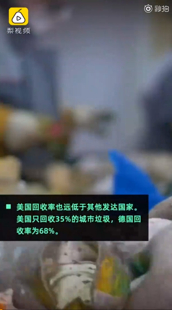 @梨视频:《卫报》7月3日报道,全球风险咨询公司Verisk Maplecroft新分析显示,美国仅占全球人口4%,却产生全球12%的城市固体废物。而中国和印度占世界人口36%以上,产生的固废占全球27%。美国回收率也远低于其他发达国家,是唯一一个废物产生量超过其回收能力的发达国家。