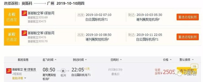 广州=莫斯科,往返含税2.5K,10月2日-10日;