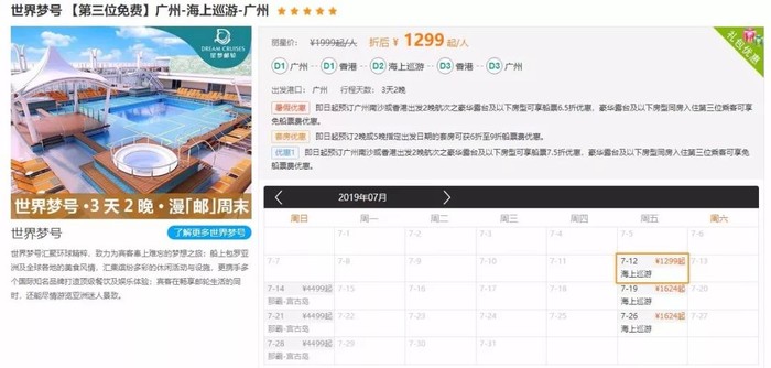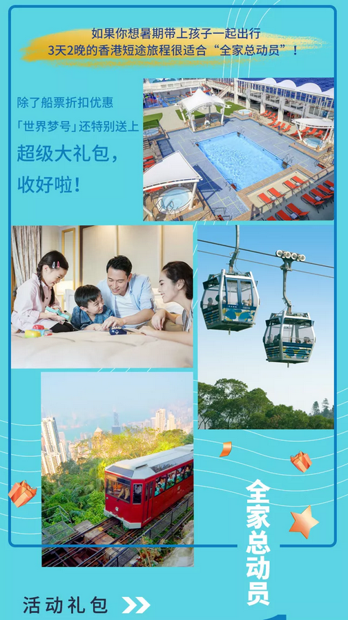 1、世界梦号: 广州出发香港公海巡游三天两晚航线(参与闪促出发日期:7月19日/7月26日/8月2日/8月9日/8月23日/8月26日)