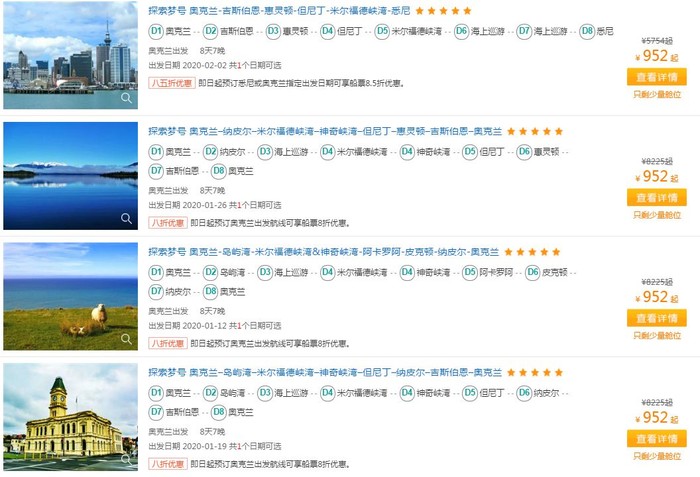 亮点:人均最低仅需952元,在新西兰最美的季节,一次航程饱览4-6个城市,上岸的时候同样可以选择自由行!