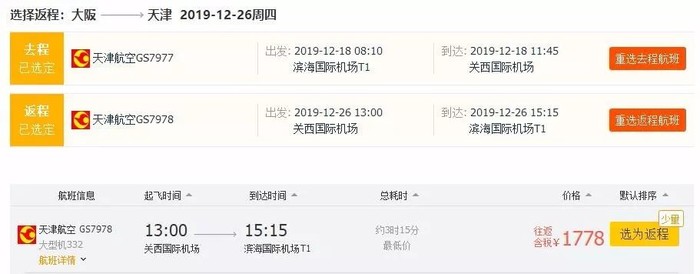 天津=大阪,往返含税1.7K,12月18日-26日;