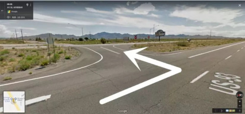 从拉斯维加斯(驻旧金山总领馆领区)前往大峡谷国家公园(驻洛杉矶总领馆领区)西缘的Skywalk(玻璃栈桥),需在多兰泉附近左转,穿越93号公路北向车道,上皮尔斯渡轮公路。该路口左转道路面划有白色实线,右侧立有STOP(停车让行)标识,而北向车道无STOP标识。根据交规,北向车辆在任何情况下均享有优先通行权,左转车辆必须在此停车等候,为北向直行车辆让行。