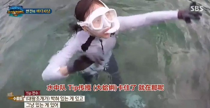 李烈音回到海面上,节目组的人说“抓就行,这是蛤蜊”。