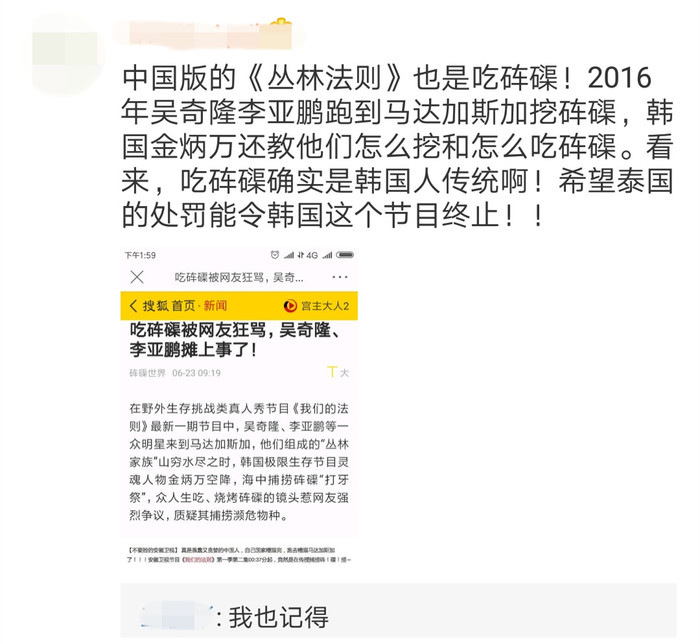 之后还有网友爆料,节目录制捕捉蛤蜊的海域并未得到许可证,节目组拿到的许可证是另一个区域。另外,在进入捕捉蛤蜊海域之前,当地导游从告诫节目组这片海域不可以进入,但节目组一意孤行。之后,在录制时也没有带上当地人,所以对泰国当地的法律完全不了解。