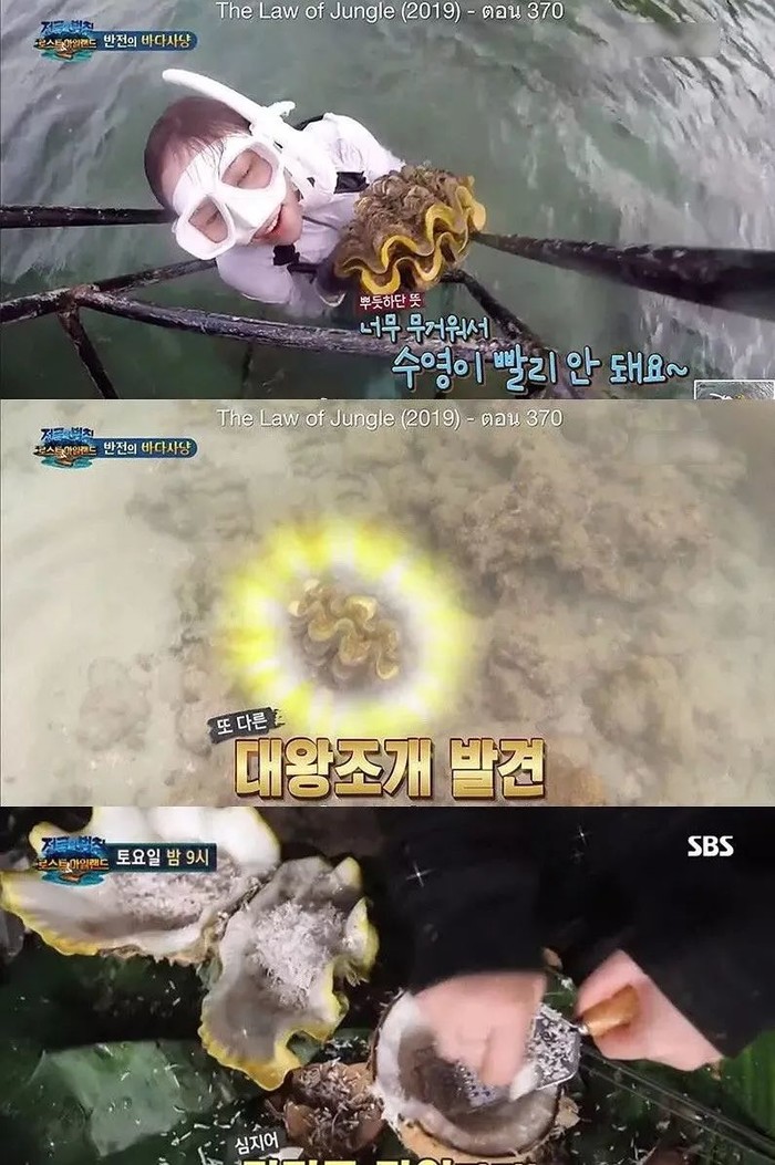 上个月29日,韩国SBS综艺节目《丛林的法则》播出了韩国女演员李烈音在泰国进行海洋探险,并捕捉一只大型蛤蜊的画面。