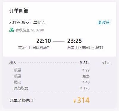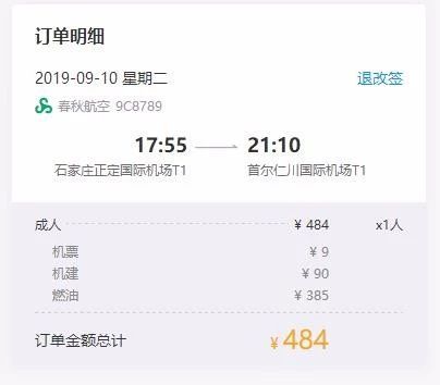石家庄-首尔,单程含税484元;首尔-石家庄,单程含税314元;往返含税798元;