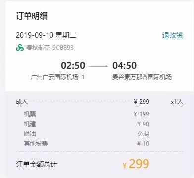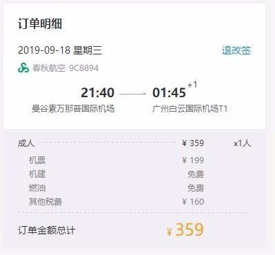 广州-曼谷,单程含税299元;曼谷-广州,单程含税359元;往返含税658元,跨中秋;