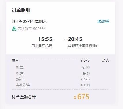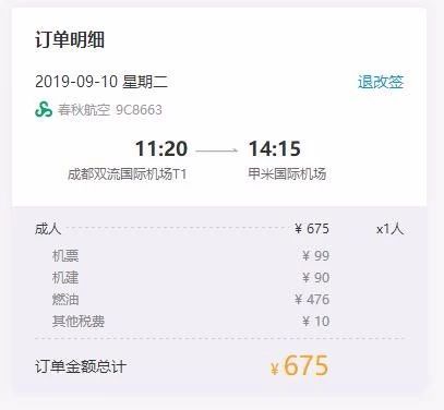 成都-甲米,单程含税675元;甲米-成都,单程含税675元;往返含税1350元;