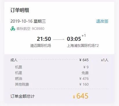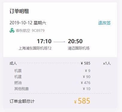 上海-清迈,单程含税585元;清迈-上海,单程含税645元;往返含税1230元;