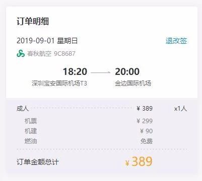 深圳-金边,单程含税389元;金边-深圳,单程含税898元;