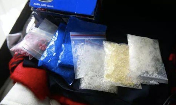 天快亮时专业缉毒人员来了,经过检查,他们把目光锁定在了一个包上。用刀片沿着缝合线拆开,黑色塑料袋掉了出来,包裹着被压得平平整整的晶状颗粒物。