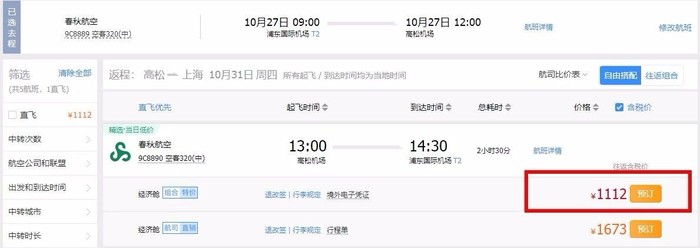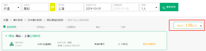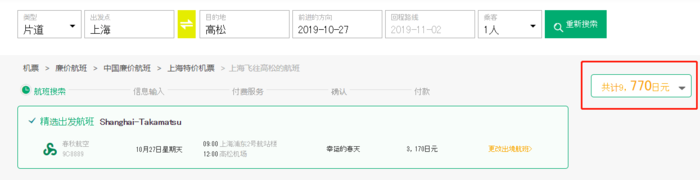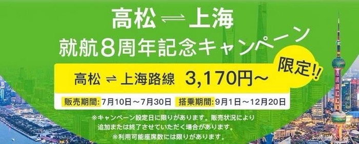 春秋日本站高松=上海线路开航8周年促销,机票价格折合人民币201元起~