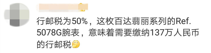 还有网友根据税率算出这块表应该交纳137万元的税款: